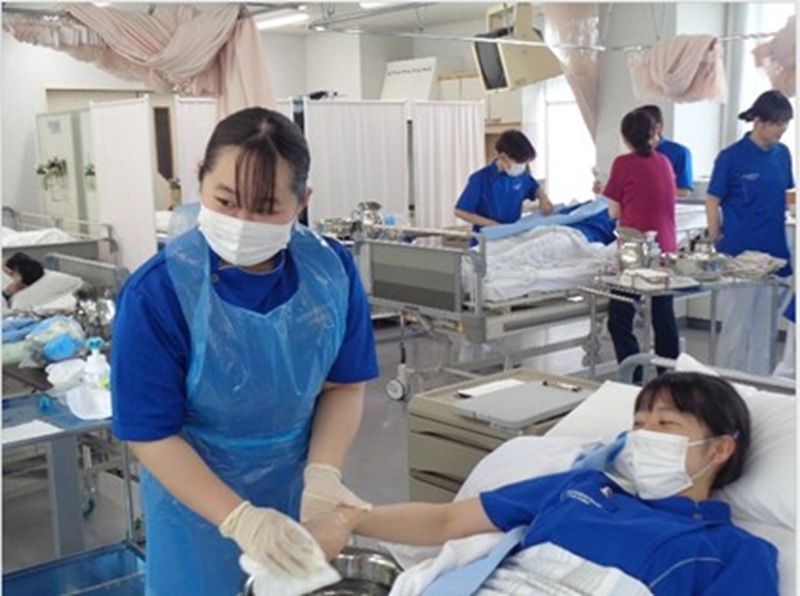 本格的に看護技術の習得も始まり、手浴と足浴に取り組みました。