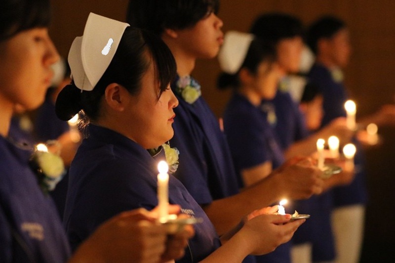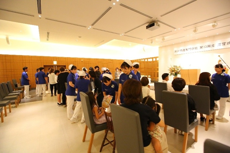 学生の希望もあり、ナースキャップを戴く「キャッピング」を 実施し、看護の道を志す決意を新たにいたしました。