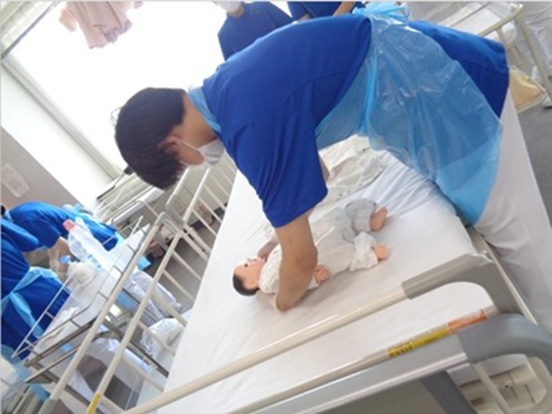 科目「小児看護学各論Ⅱ」では、こどもの成長段階に応じた 関わり方や観察のポイントを学習し、演習を通して 理解を深めました。 安全・安楽に配慮した視点を意識しながら取り組むことが できました。