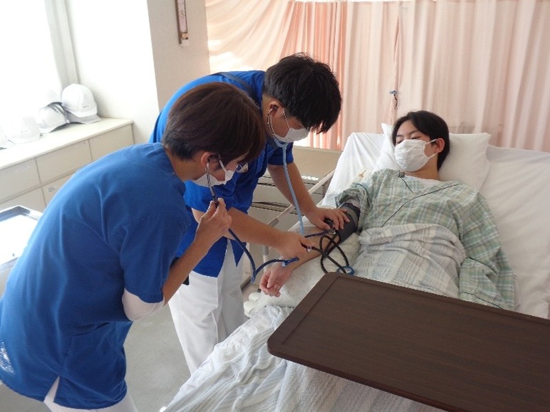 この科目では初めて患者を受け持つ実習に向けて、 指導を担当していただく指導者の方に来校していただき 技術チェックを受けました。