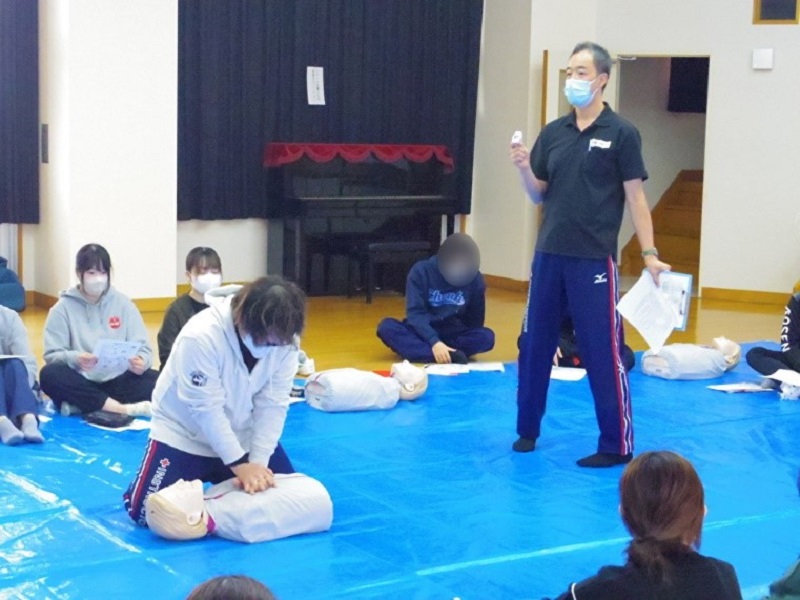 科目「災害時の健康支援」では、原町赤十字病院の 赤十字救急法指導員による一次救命講習会を行いました。