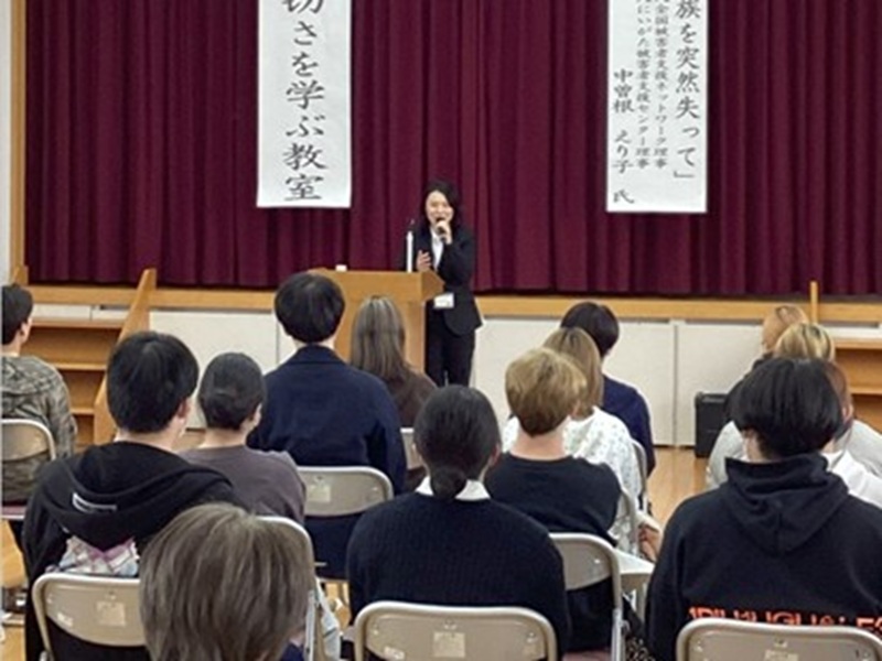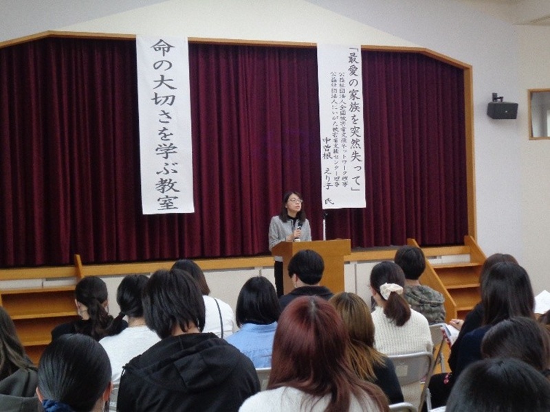 3月3日に命の大切さを学ぶ教室として、公益社団法人にいがた被害者 支援センター理事の中曽根えり子様に講演していただきました。 家族を突然失った遺族の体験を知ることは、患者さんだけでなく 家族の心理的苦痛にも目を向けた看護を考えることができるようになると 感じました。